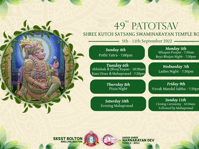 Our 49th Patotsav starts on Monday 5th September 2022, come and join us to celebrate the Utsav.